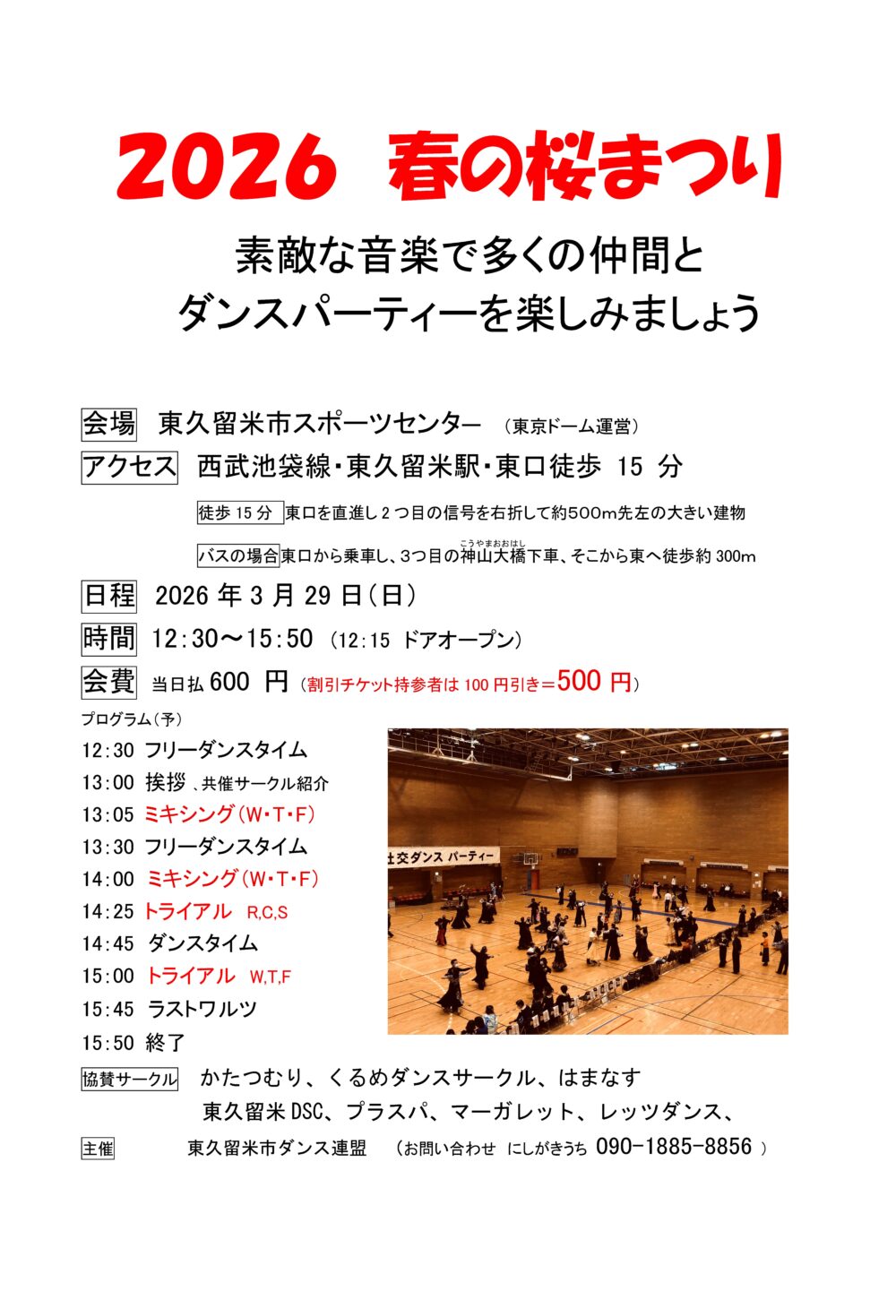 『2026春の桜まつり~素敵な音楽で多くの仲間とダンスパーティーを楽しみましょう』